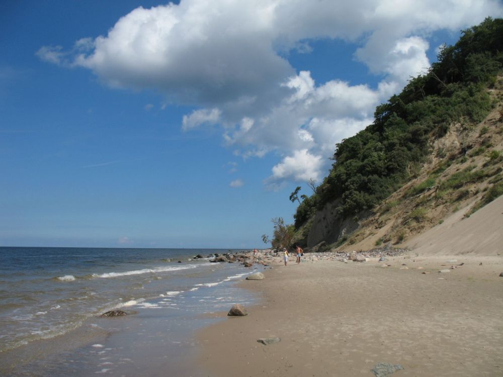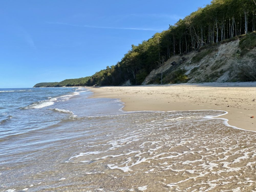 Wisełkę od morza dzieli sosnowy las z domieszką buczyny. Odległość wynosi ok. 1 kilometra, jednak spacer przez tak urokliwe tereny będzie czystą przyjemnością. Plaża znajduje się u stóp klifowego urwiska. Jest piaszczysta, niezbyt szeroka, ale dzięki temu można poczuć jej dziki klimat. Z pewnością nie spotkasz tutaj setek turystów, dlatego bez obaw o miejsce w pierwszym rzędzie, możesz najpierw nacieszyć się widokami, a później skorzystać ze słonecznych kąpieli.