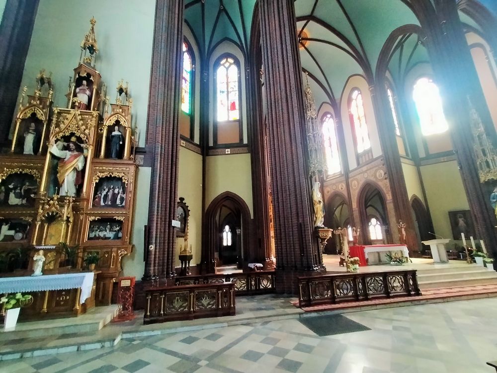 Konsekrowany przez biskupa wrocławskiego Bertrama 29 IX 1915. Trójnawowa bazylika z transeptem to budowla w neogotyckim stylu. Dzięki staraniom proboszcza w relikwiarzach umieszczono: fragment Krzyża Świętego, relikwie św. Jacka, św. Jadwigi i św. Antoniego, a także wycinki materiałów z szat św. Franciszka i św. Klary.