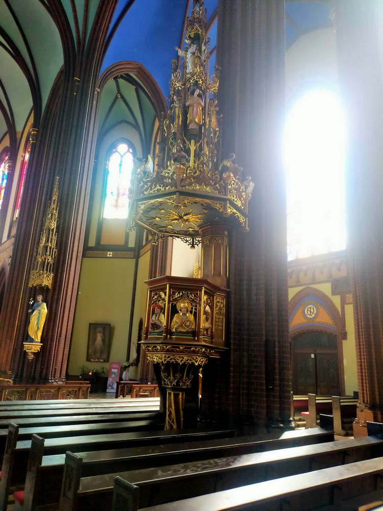 Wrocławscy rzeźbiarze wykonali także ambonę. Chrzcielnica powstała także we Wrocławiu, lecz w innej pracowni. Z kolei tron biskupi stworzyli mistrzowie z bawarskiego Oberammergau. W 1908 roku postały stacje drogi krzyżowej. Warto zwrócić uwagę także na cztery neogotyckie konfesjonały, a także ołtarze boczne, szczególnie z ten z prawej strony. Jest to ołtarz Matki Bożej Różańcowej wykonany w Regensburgu w pracowni Augustyna Jagera.