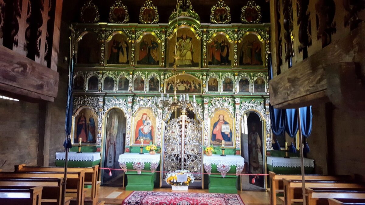 Chór śpiewaczy w formie galerii obiega babiniec i zachodnią część nawy. Nad chórem zachowały się fragmenty starszego, XVII-wiecznego ikonostasu. W sanktuarium uwagę przyciąga rokokowy ołtarz główny z obrazem św. Mikołaja oraz drewniane tabernakulum z ikonami na ściankach. W przedsionku znajduje się feretron z rzeźbioną figurą Matki Boskiej, ubraną w szaty i wyposażoną w prawdziwe włosy.