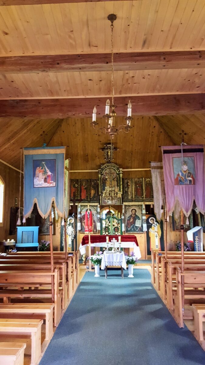 Wnętrze cerkwi zostało uzupełnione po II wojnie światowej. W latach 8-tych XX wieku zamontowano ikonostas autorstwa Andrija (Andrzeja) Stefanowskiego, wykonany z ikon pochodzących z nieistniejących cerkwi w Ruszelczycach i Leszczawce. Ikony te, datowane na XVIII wiek, nadają wnętrzu wyjątkową wartość artystyczną i historyczną.