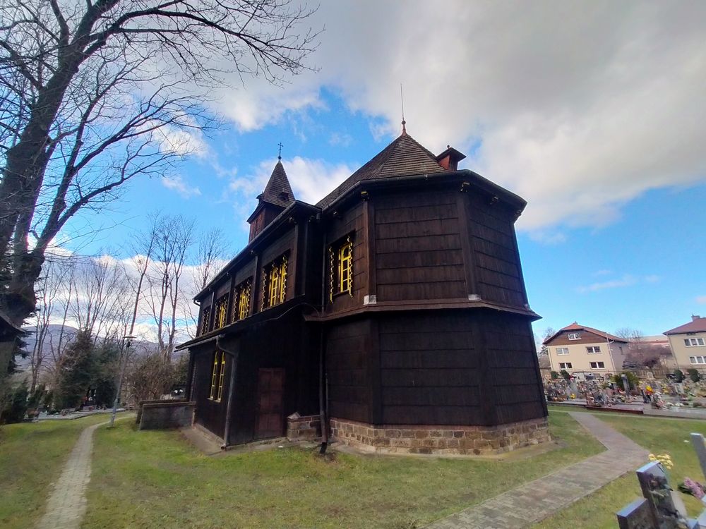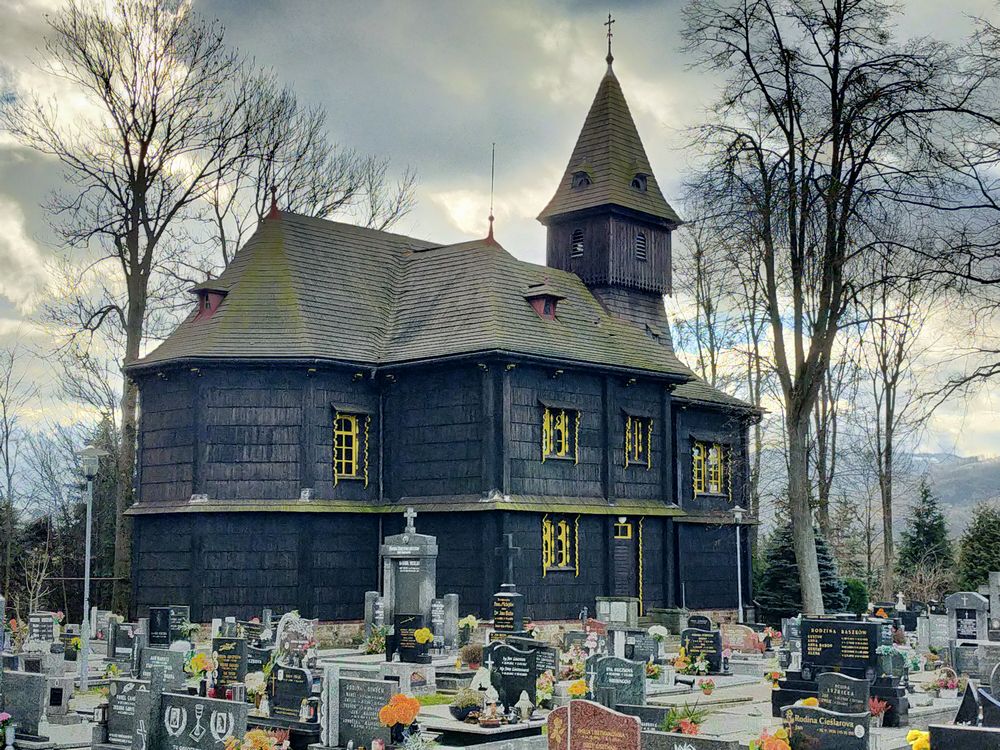 Kilka kilometrów dalej przy tej samej drodze, w sąsiedniej wsi Nydek można zobaczyć drewniany kościół świętego Mikołaja – tutaj opis obiektu.