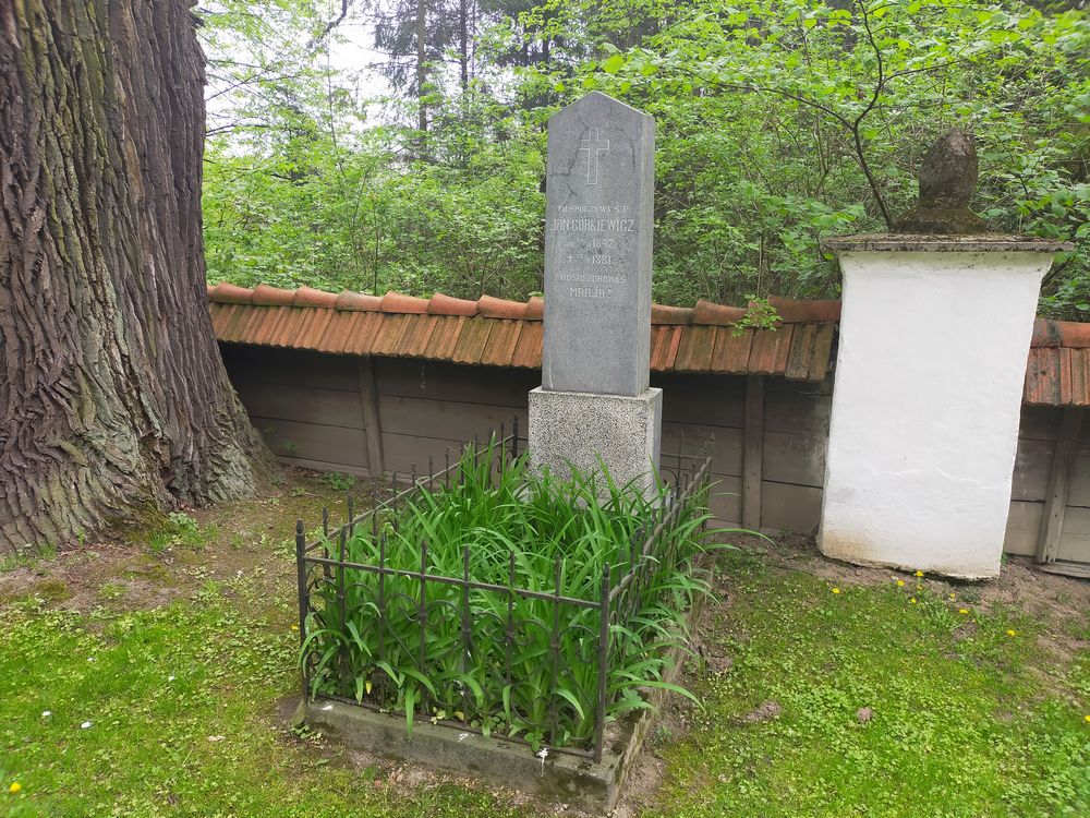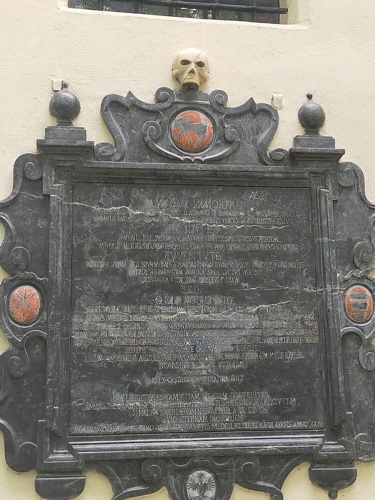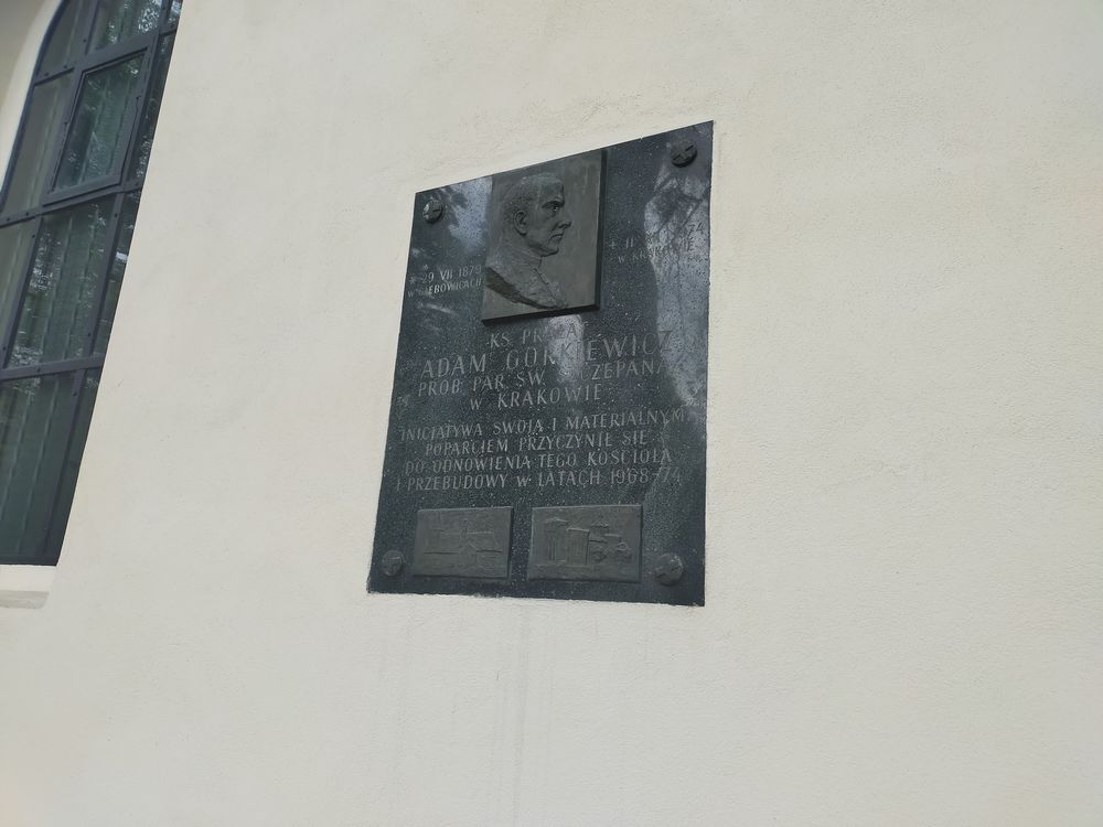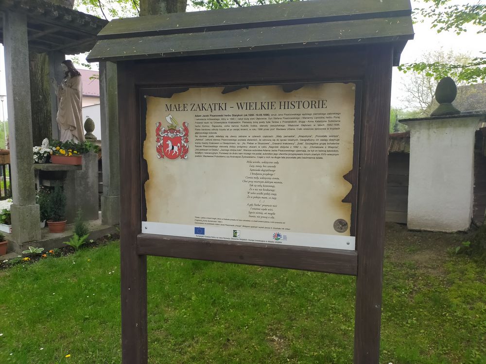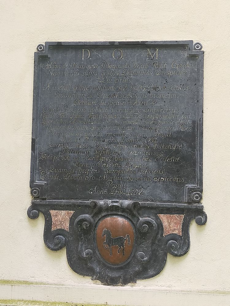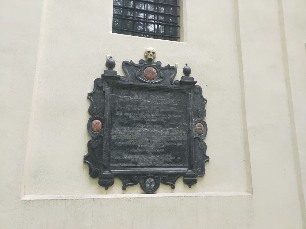 Na wschodniej ścianie zakrystii wmurowane zostały epitafia właścicieli wsi, m.in. Skrzyńskich herbu Łąbędź, a także Duninów i Pisarzowskich (elewacje prezbiterium i kaplic). W roku 1854 w filar bramki wejściowej wmurowano najstarszą w Małopolsce, pochodzącą z 1546 roku płytę nagrobną (postać rycerza z mieczem i tarczą) – śląskiego szlachcica Jakuba Saszowskiego z Gierałtowic (vel Gierałtowski z Gierałtowic). Był on oświęcimskim sędzią, z Domu Saszowskich (Szaszowskich).