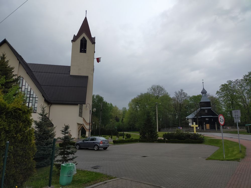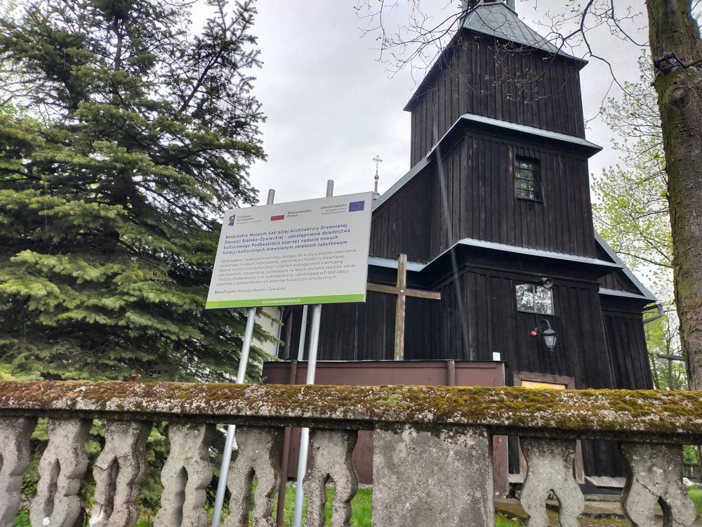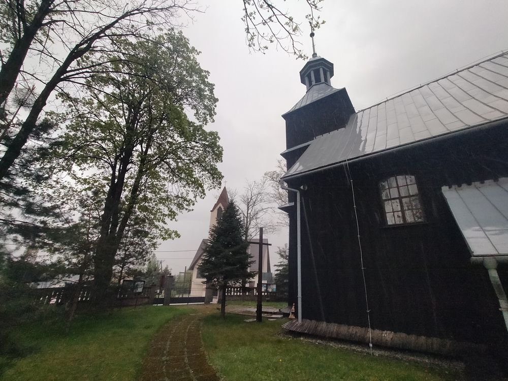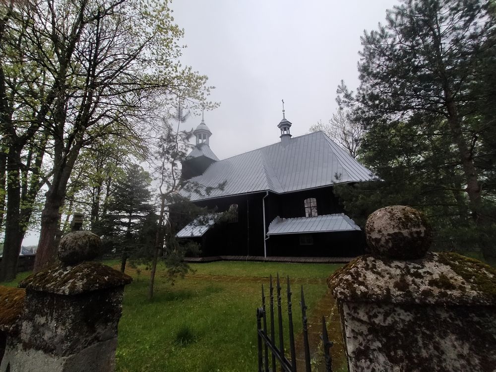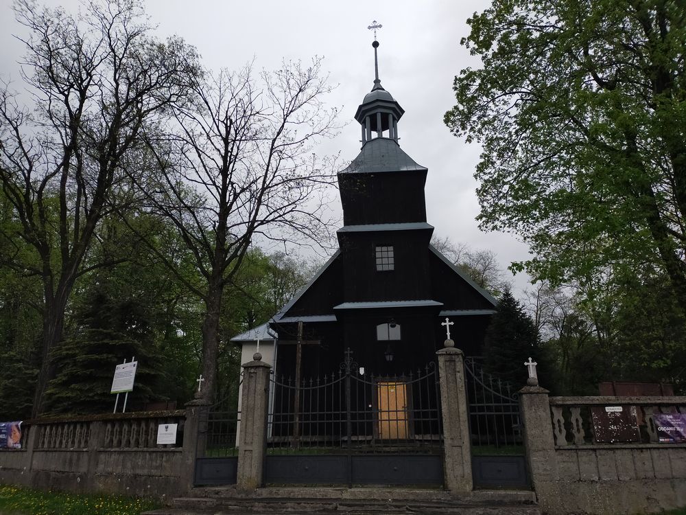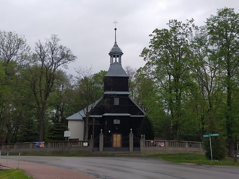 Obiekt jednonawowy jest orientowany konstrukcji zrębowej. Wieża pokryta blach z kolei jest konstrukcji słupowo-ramowej i zwieńczona pozorną latarnią. Prezbiterium znajduje się na wschodzie kościoła, a do niego i nawy od północnej strony przylega zakrystia. Pokrywa je jednokalenicowy eternitowy dach o formie pośredniej między typem śląskim a małopolskim. Otacza go kamienny mur, okalający pozostałość po cmentarzu parafialnym, ze starym zabytkowym krzyżem.