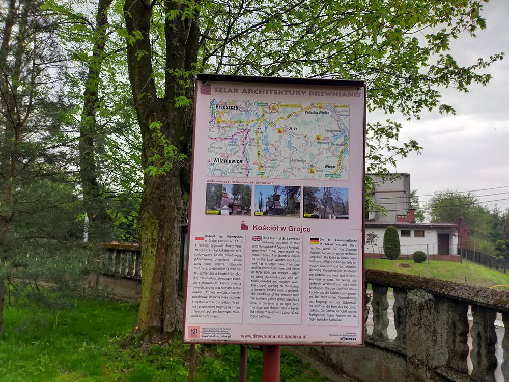 Znajdujący się nieopodal Oświęcimia małopolski Grojec jest miejscem, gdzie można podziwiać drewniany zabytek architektury sakralnej, jakim jest Kościół św. Wawrzyńca (obecnie nieużytkowany). Pełnił funkcję kościoła parafialnego do 2000 roku, kiedy to zastąpiony został murowanym kościołem pw. Matki Bożej Miłosierdzia (Ostrobramskiej) mieszczącym się naprzeciwko. Mieści się na Szlaku Architektury Drewnianej województwa małopolskiego.