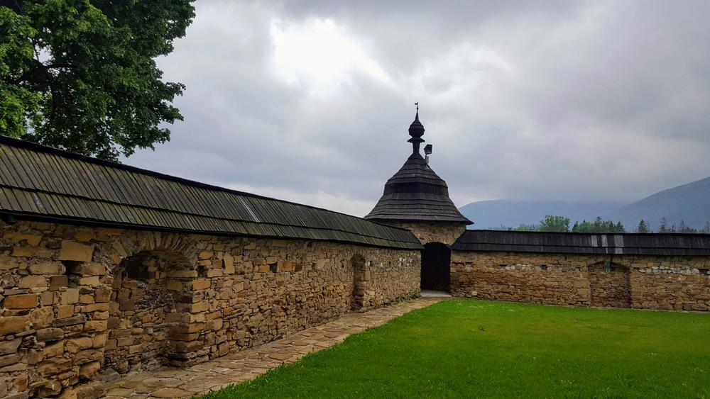 Jadąc tą drogą wielokrotnie, zawsze chciałem zatrzymać się w małej miejscowości, zlokalizowanej jako pierwsza liptowska miejscowość od strony wspomnianej przełęczy, a mianowicie w Liptowskich Matiaszowcach (słow. Liptovské Matiašovce). Rozciąga się stąd malowniczy widok na Wielkiego Chocza (słow. Veľký Choč, 1608 m n.p.m.), na którym byłem kiedyś w zimie. Wioska dzieli się na dwie części, a w jej południowej części, na skraju Wyżnich Matiaszowców (słow. Wyšné Matiašovce) stoi kościół otoczony murowanym ogrodzeniem z basztami umieszczonymi na jego rogach i pokrytymi drewnianymi gontami.
