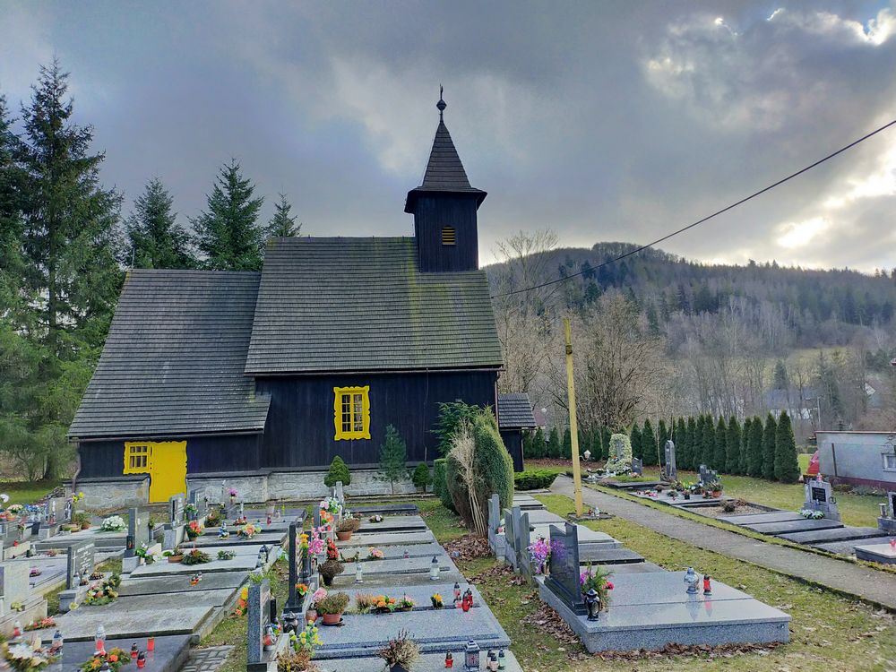 Przy tej samej ulicy w sąsiedniej Bystrzycy można zobaczyć drewniany kościół pod wezwaniem Podwyższenia Krzyża Świętego.