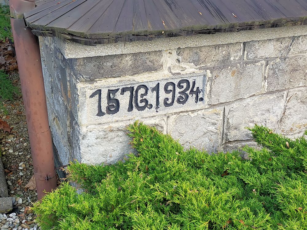 / Letha panie tisicziho pietisteho Sedmdesateho ssesteho poczytagic Tento chram swaty gest zbudowan a wystawen ku czti a chwale gmena pna Boha wssemohuczyho nakladem sauseduw a lidi tegto diediny za czasu ffojta gmenem Walka Rykaly, ktery negprzednegszy puwod byl k staweni tohoto chramu Swateho s Tomassem bratrem swym, kterzy na ten czas spolu toto ffogtstwi držely /