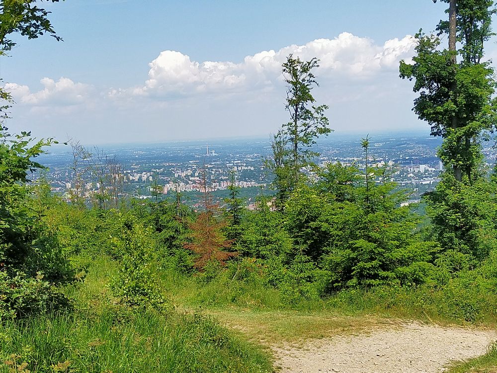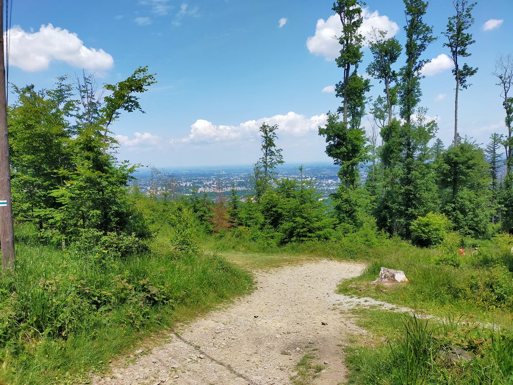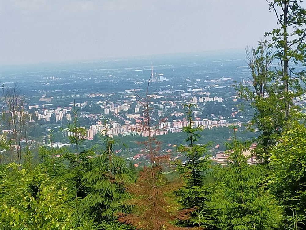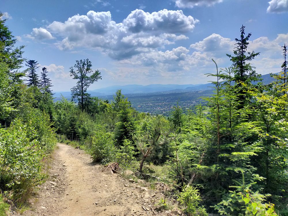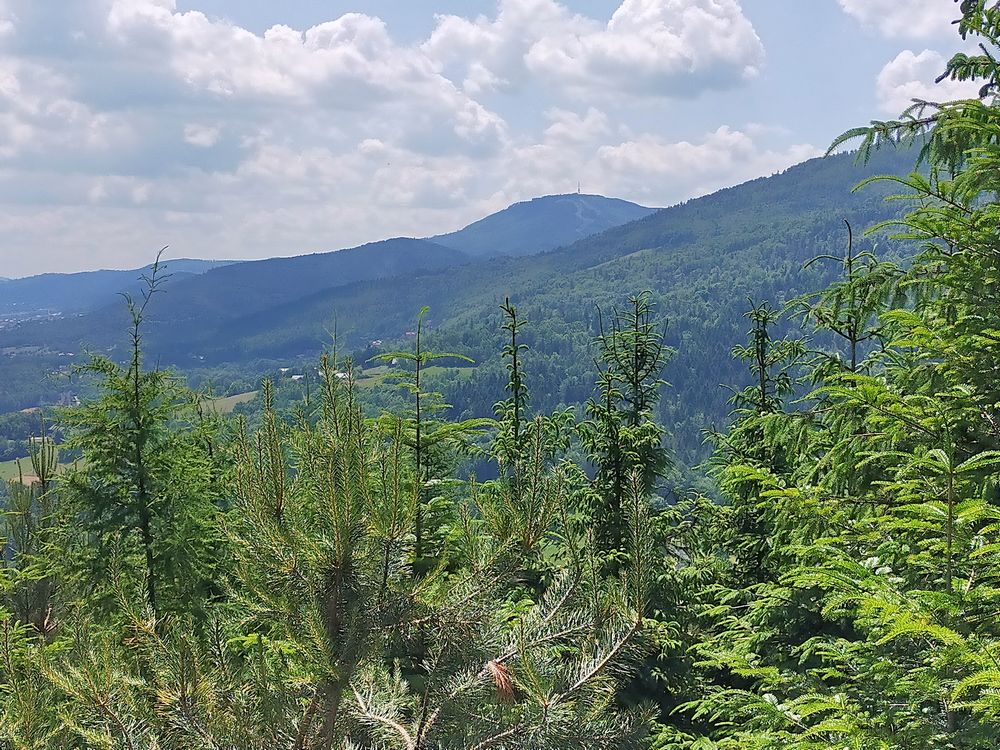 Dla odmiany rozpocząłem dzisiejszy spacer z Bystrej. Wystartowałem z parkingu Pod Źródłem czerwonym szlakiem w kierunku Koziej Góry (683 m n.p.m.). Bardzo ładna panorama i szybkie nabieranie wysokości to jest to, co można lubić lub nie 😉 Następnym punktem było miejsce pod Równią, gdzie czerwony szlak schodzi dalej w kierunku bielskich Błoni, a niebieski idzie w kierunku Stefanki (tak się mówi na schronisko na szczycie, co ma związek z burmistrzem Bielska z tego okresu). Podążyłem w stronę schroniska i wyżej aż do altany, gdzie także można podziwiać piękną panoramę na Beskid Śląski i miasto Bielsko-Białą.
