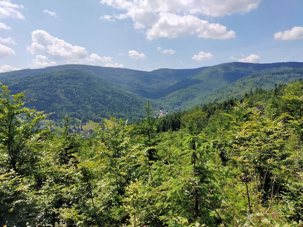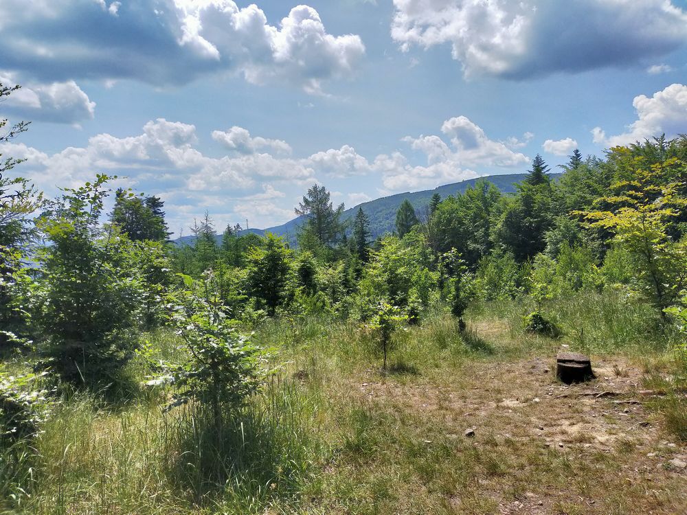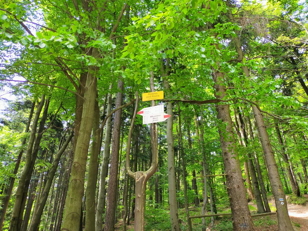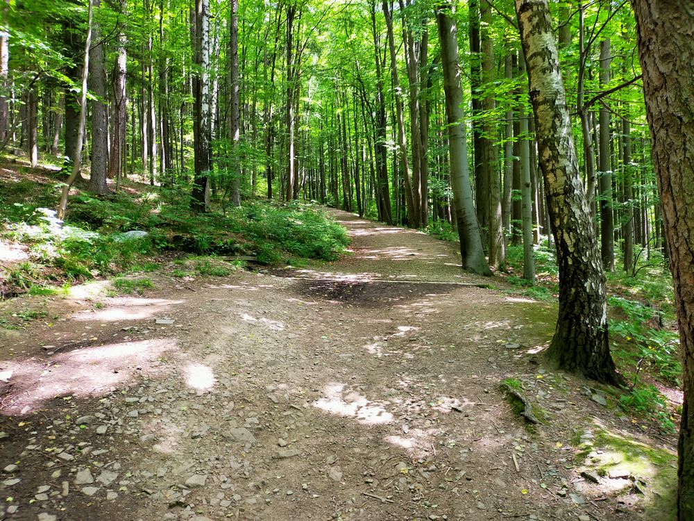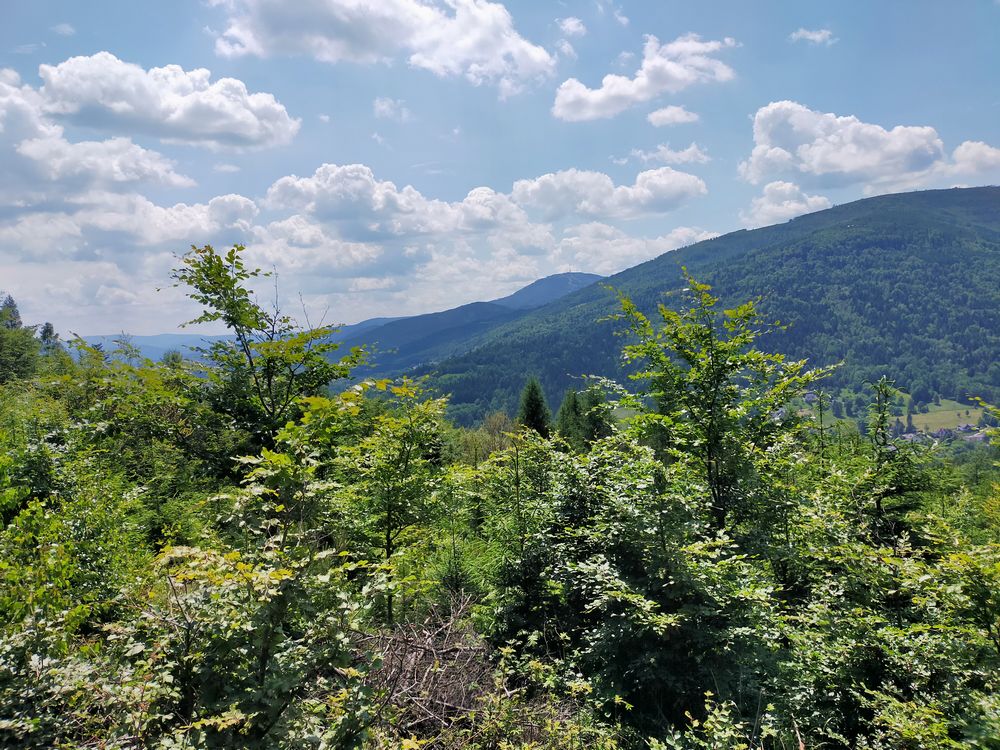 Dla odmiany rozpocząłem dzisiejszy spacer z Bystrej. Wystartowałem z parkingu Pod Źródłem czerwonym szlakiem w kierunku Koziej Góry (683 m n.p.m.). Bardzo ładna panorama i szybkie nabieranie wysokości to jest to, co można lubić lub nie 😉 Następnym punktem było miejsce pod Równią, gdzie czerwony szlak schodzi dalej w kierunku bielskich Błoni, a niebieski idzie w kierunku Stefanki (tak się mówi na schronisko na szczycie, co ma związek z burmistrzem Bielska z tego okresu). Podążyłem w stronę schroniska i wyżej aż do altany, gdzie także można podziwiać piękną panoramę na Beskid Śląski i miasto Bielsko-Białą.