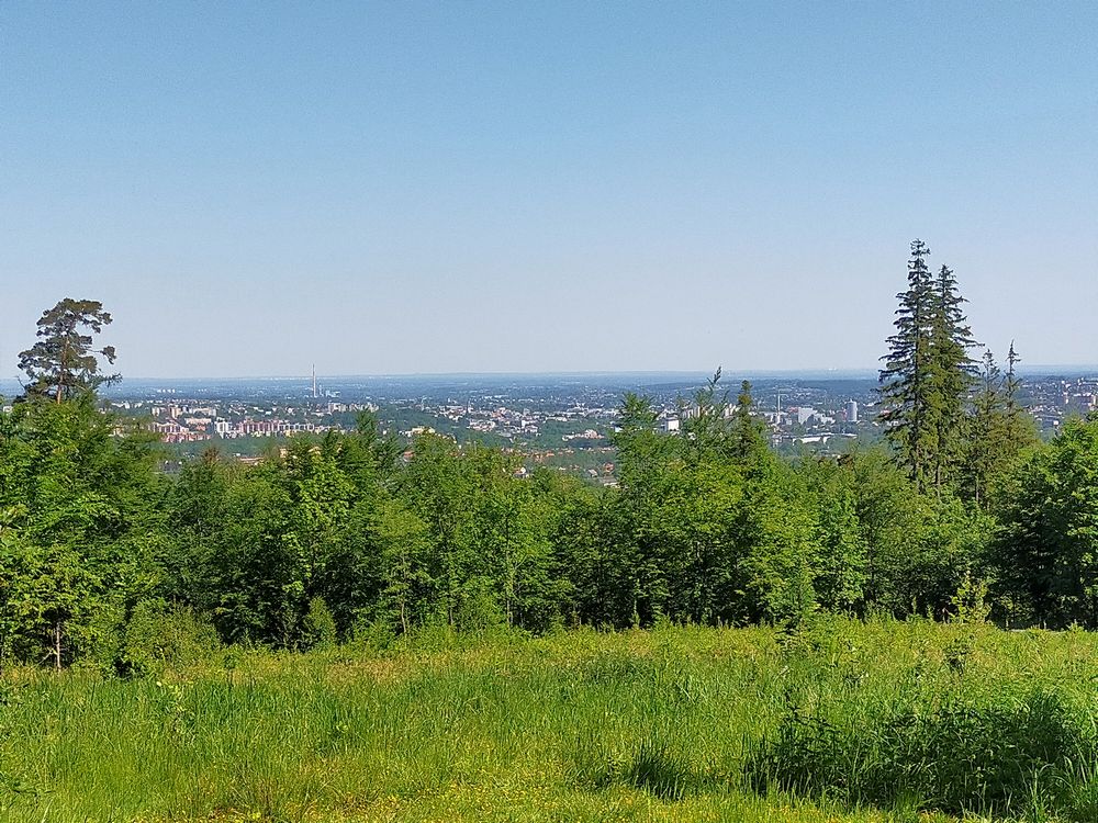 Tym razem w niedzielny poranek udałem się na Kozią Górę (683 m n.p.m.) w Beskidzie Śląskim. Po wczorajszym dniu nie chciałem się bardzo forować, ale mimo to te dzisiejsze półtora godziny dało mi się odczuć. Podjechałem samochodem na bielskie Błonia i zaparkowałem powyżej Wirtuozerii. Na Błoniach słychać było, że jest jakaś impreza, parkingi były przepełnione i spotkać można było wielu ludzi. Rowerzyści, rodziny z dziećmi i psami, po prostu wszyscy. Nie ma co się dziwić, gdyż kolejny dzień mamy cudną pogodą.