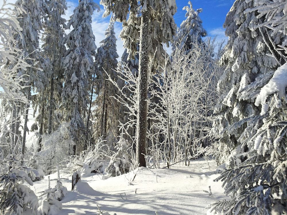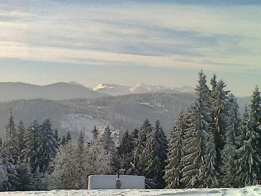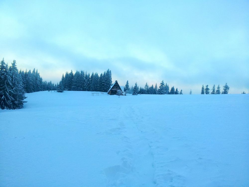 Znając te okolice udaliśmy się na Grubą Buczynę (słow. Hrubá Bučina, 1132 m n.p.m.), gdzie skąd rozpościera się wspaniała panorama na stronę słowacką. Tym razem przejrzystość powietrza nie pozwoliła na to, co znało się z poprzednich wizyt, a i drzewa „trochę podrosły„ ;-). Po krótkiej wizycie na tym szczycie udaliśmy się do bacówki, gdzie zamówiliśmy pyszne piwo. Spod schroniska można podziwiać m.in. szczyty Małej Fatry z Wielkim Rozsutcem i Stohem na czele. Po miłym odpoczynku udaliśmy się w drogę powrotną, z tą różnicą, że ja wracałem tą samą trasą do samochodu, a Adam na nartach przez Kubiszówkę pod sklep spożywczy w Glince.