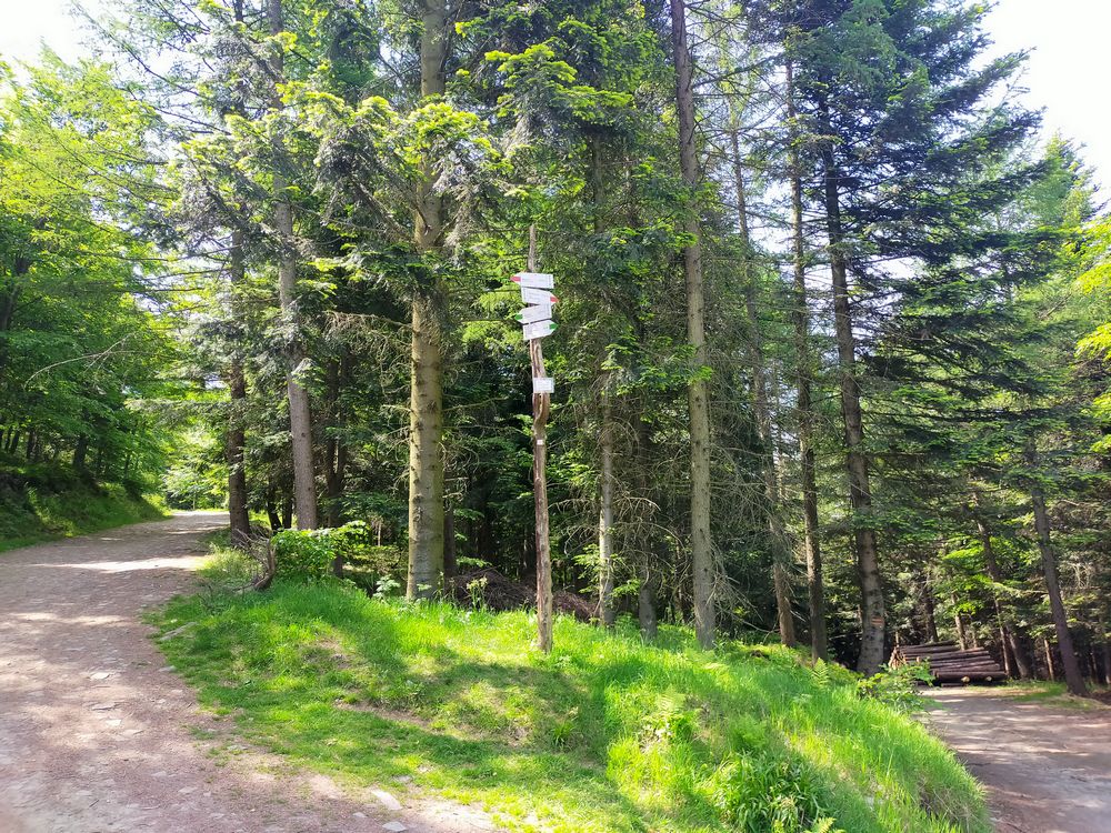 Pod schroniskiem trochę ludzi, gdyż pogoda znowu dopisała. Wypiłem wodę i ruszyłem tą samą trasą z powrotem. W aucie byłem 11:40. Cały spacer zajął mi 1 godzinę i 25 minut.