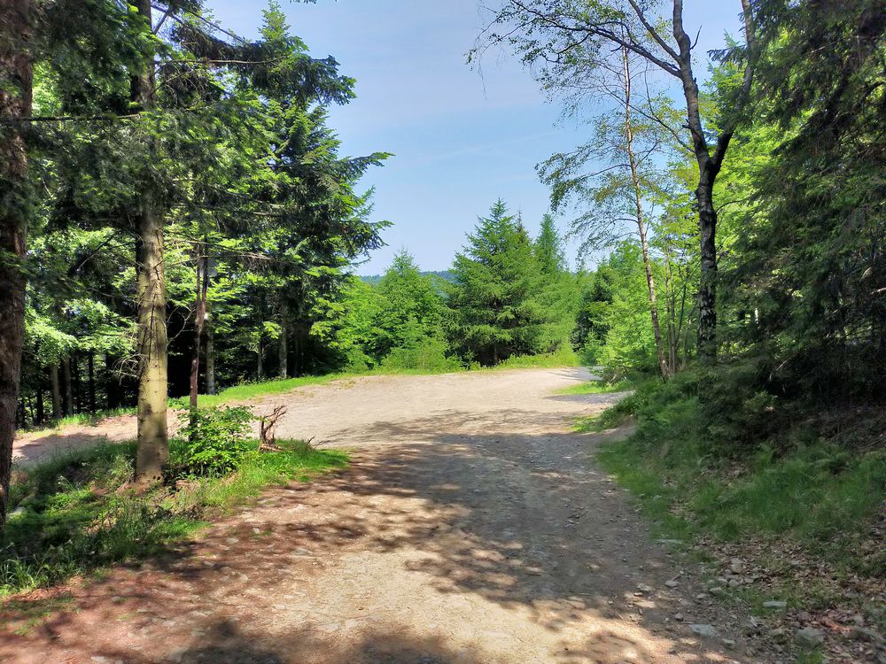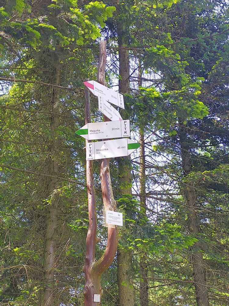 Tym razem wyszedłem nieco później. Wystartowałem z samochodu spod parkingu w Straconce Hańderkula, stosunkowo niedaleko od przełęczy Przegibek. Biegnie tamtędy zielony szlak na Magurkę Wilkowicką. Trasa jest jak dla mnie ciekawa, gdyż dość ostro prowadzi na sam szczyt. Szybko łapie się wysokość. Na szlaku tylko fragmentarycznie widoki w kierunku Bielska-Białej z Łysą Górą i szczytami Beskidu Śląskiego na pierwszym planie. Po jakiejś pół godzinie doszedłem do rozwidlenia szlaków, gdzie dochodzi niebieski z Przegibka i czerwony z Małej Straconki. Kontynuowałem marsz szlakiem zielonym do samego schroniska. Te ostatnie 15 minut dało mi trochę w kość.