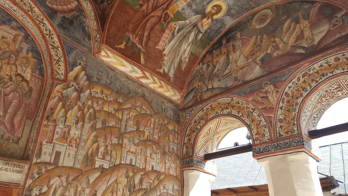 To właśnie wtedy dodano charakterystyczny ganek w stylu brâncoveańskim oraz wykonano imponujące freski. Dzięki temu dziś możemy podziwiać bogate dekoracje i dopracowane detale, które przyciągają wzrok niemal na każdym kroku.