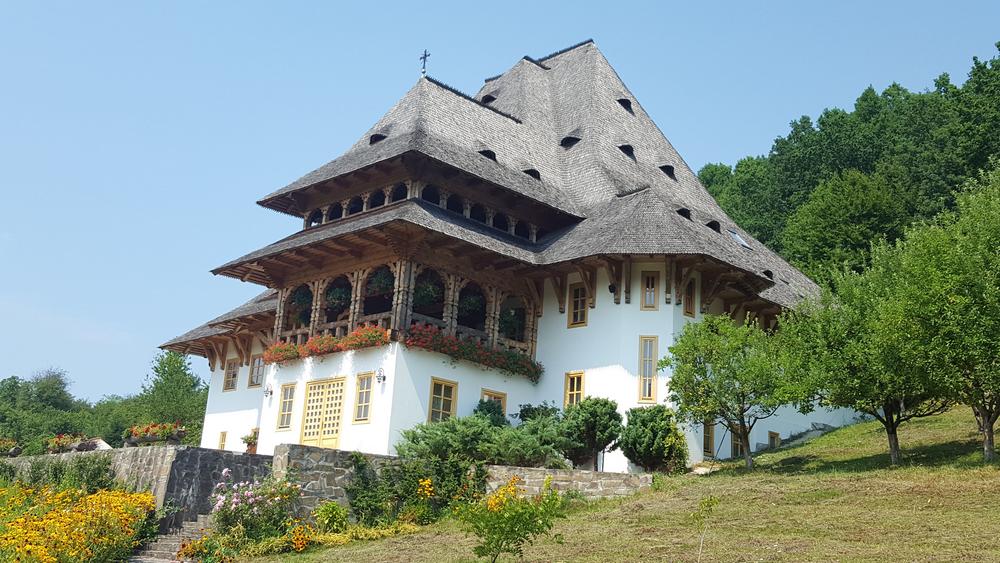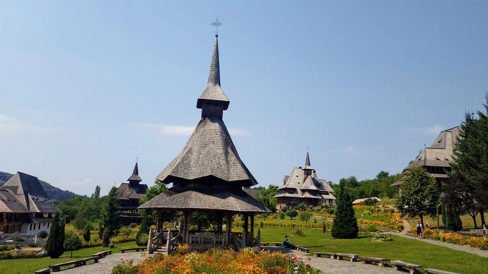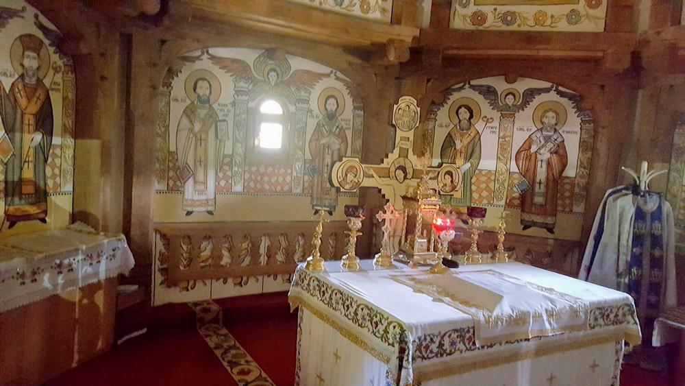 Po jej przekroczeniu naszym oczom ukazuje się piękny, niezwykle zadbany i tonący w kwiatach klasztorny kompleks. Najstarszym budynkiem jest cerkiew z 1720 roku pod wezwaniem Dwunastu Apostołów (jedna z ośmiu wpisanych na listę UNESCO) z zachwycającymi malowidłami i ikonostasem. Do momentu wybudowania cerkwi w Sapancie to właśnie tutejsza budowla mogła pochwalić się najwyższą wieżą (56 metrów). Wielkim zaskoczeniem dla nas jest fakt, że budowę zespołu klasztornego przy cerkwi rozpoczęto… w 1997 roku. Budowniczym udało się zachować tradycyjny styl marmaroskiej architektury, dzięki czemu kompleks stanowi całość. Oprócz cerkwi znajduje się tutaj także kaplica, studnia, budynki mieszkalne dla mniszek oraz muzeum, w którym zgromadzono bezcenne ikony, rękopisy i dzieła sztuki ludowej. A, i jeszcze niewielka hodowla pawi 🙂 Przez środek obiektu przepływa strumień, nad którym przewieszono urocze mostki. Spacer kamiennymi ścieżkami wśród budynków upstrzonych kwiatami jest dla nas czystą przyjemnością. Być może spędzilibyśmy w Barsanie więcej czasu, ale zaczynamy być lekko zmęczeni, a do Przysłopu jeszcze daleko. Dlatego żegnamy klasztor i znów ładujemy się do auta.