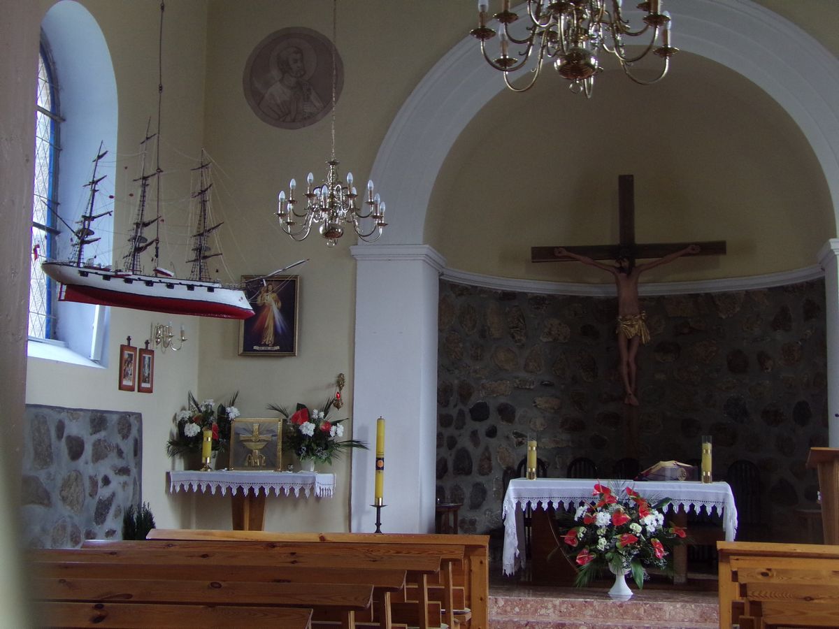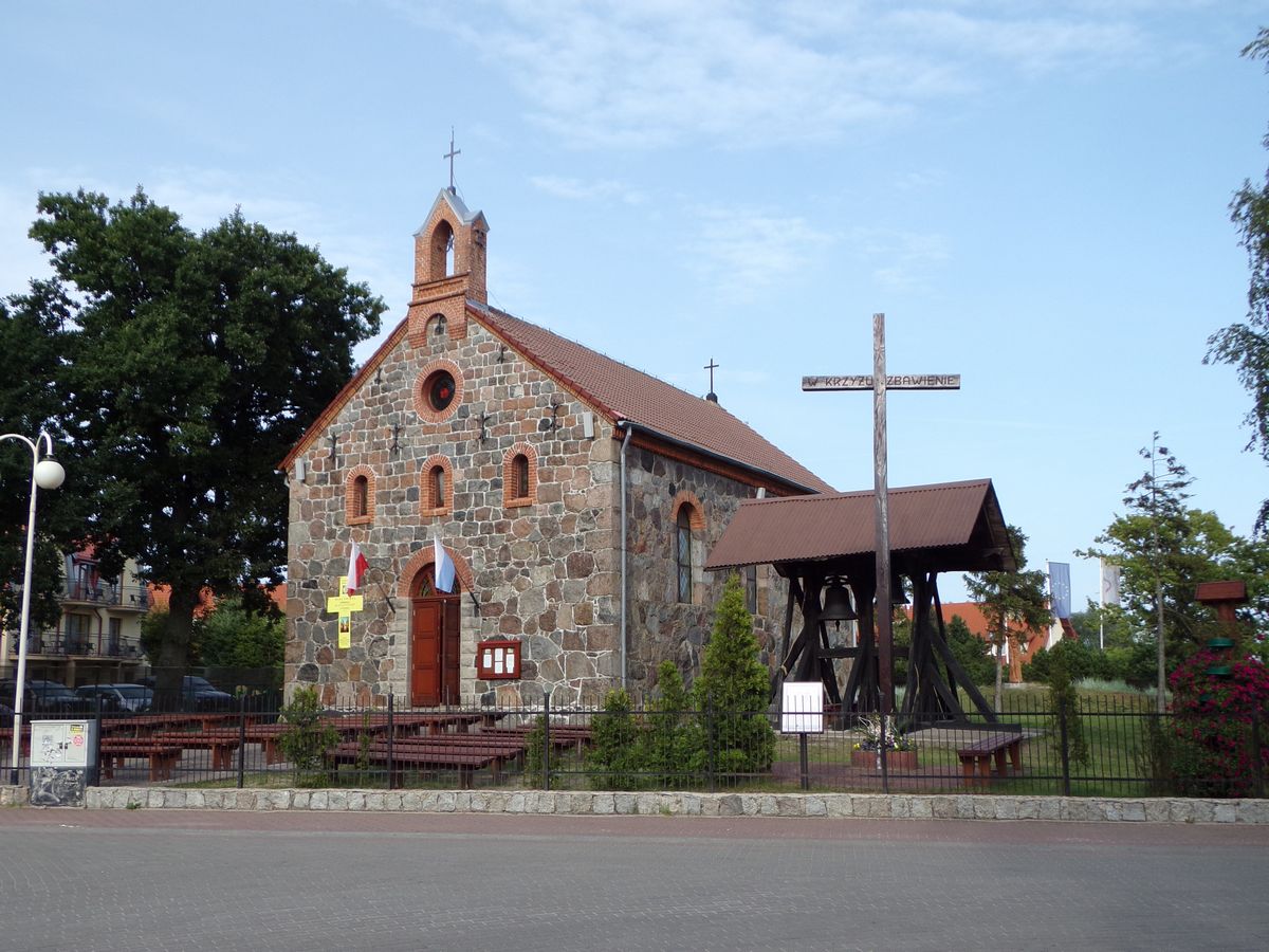 Tutejszy kościół zbudowany został z budulca pochodzącego z Wyspy Kamiennej umiejscowionej na jeziorze Gardno. Jednak wbrew pozorom nie jest on aż tak stary, jakby się wydawało, ponieważ data jego powstania to zaledwie pierwsza połowa XIX w.
