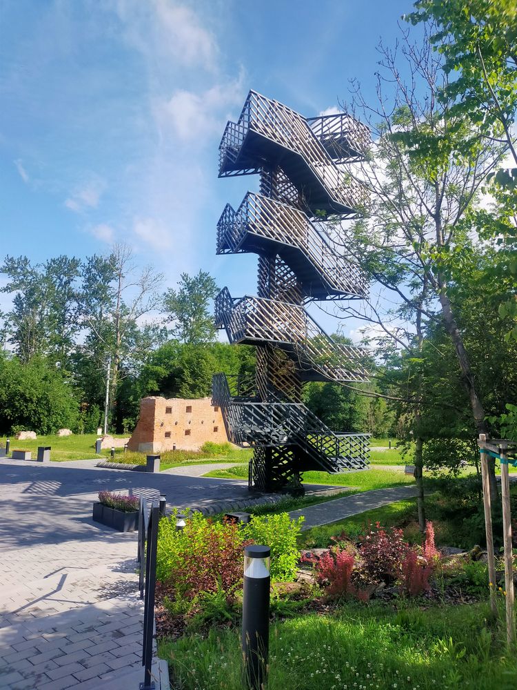 Wieża widokowa została zlokalizowana na 19. południku długości geograficznej północnej. Jej wysokość wynosi 15,97 metra wysokości (miała być wyższa, ale nie zgodził się na to konserwator zabytków). Można z niej obserwować zrewitalizowany teren oraz okoliczne zabytki architektonicznych i pobliskich obiektów historycznych. Niedaleko rośnie dąb „Bartek” oraz lipy, które są charakterystycznie uformowane, ukształtowane przez specjalne cięcia w kandelabry dzięki starej technice ogrodniczej sprzed 200 lat temu. Cała okolica jest owiana legendami i podaniami, a same lipy ponoć stanowiły serca świętych gajów.