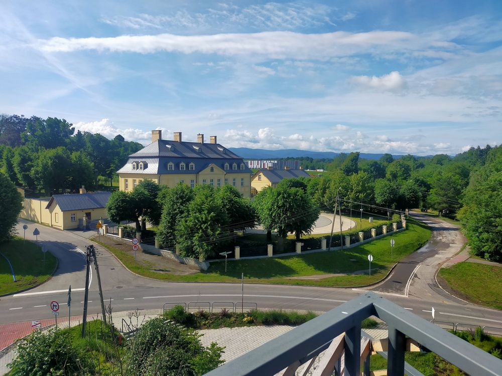 Naprzeciwko wznosi się XVIII-wieczny Pałac Kotulińskich, który doskonale prezentuje się z wieży widokowej.