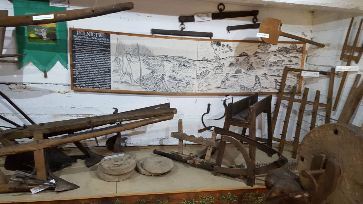 Ekspozycja pozwala zrozumieć, jak wyglądała praca w gospodarstwie rolnym przed erą nowoczesnych maszyn.