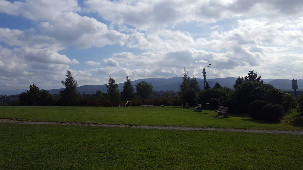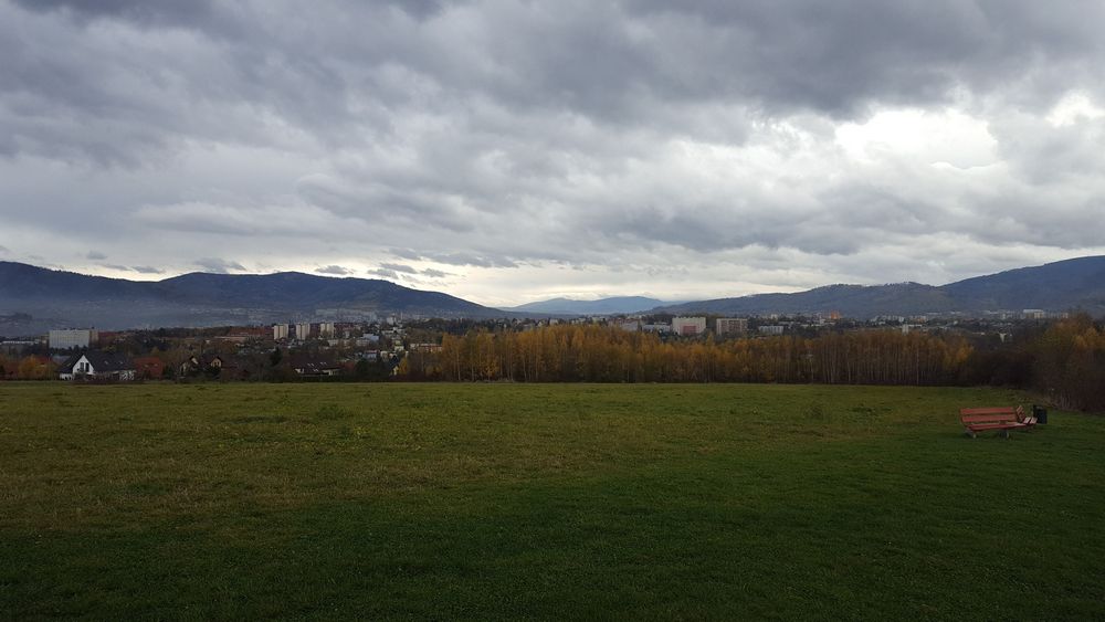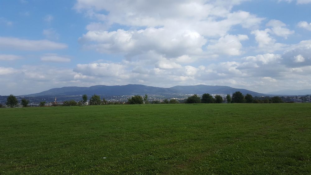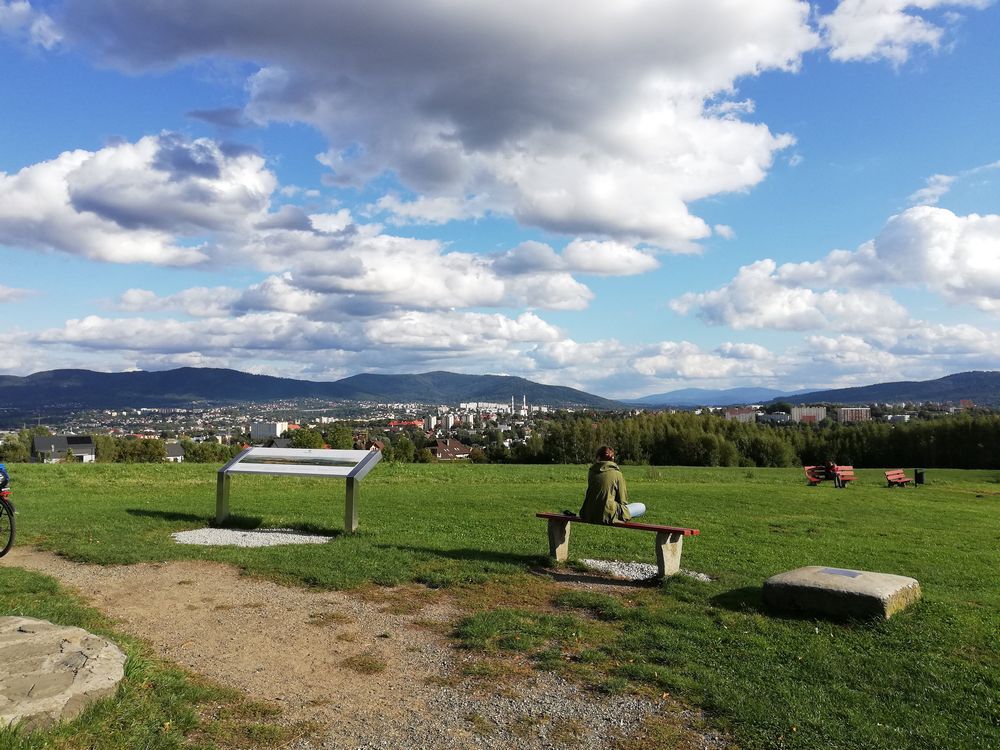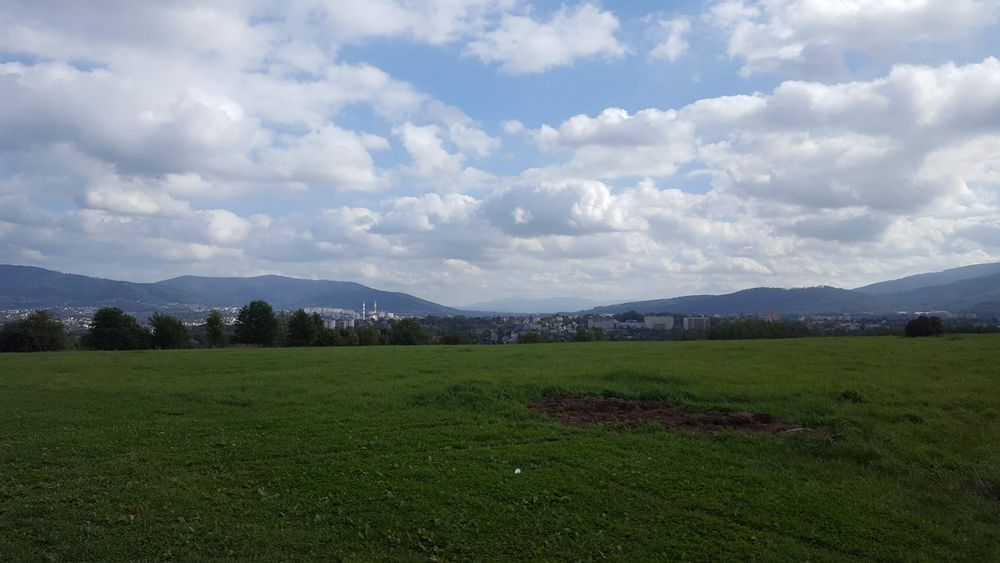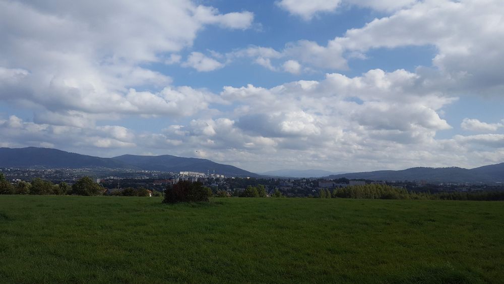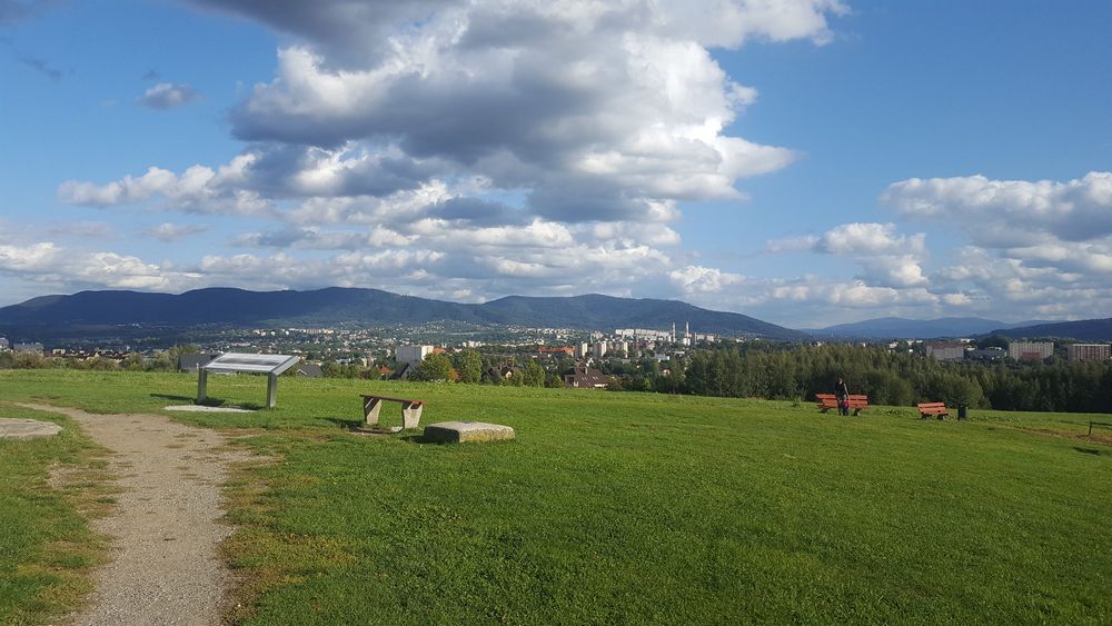 Szeroka panorama ze szczytu „Trzy Lipki” w Bielsku-Białej