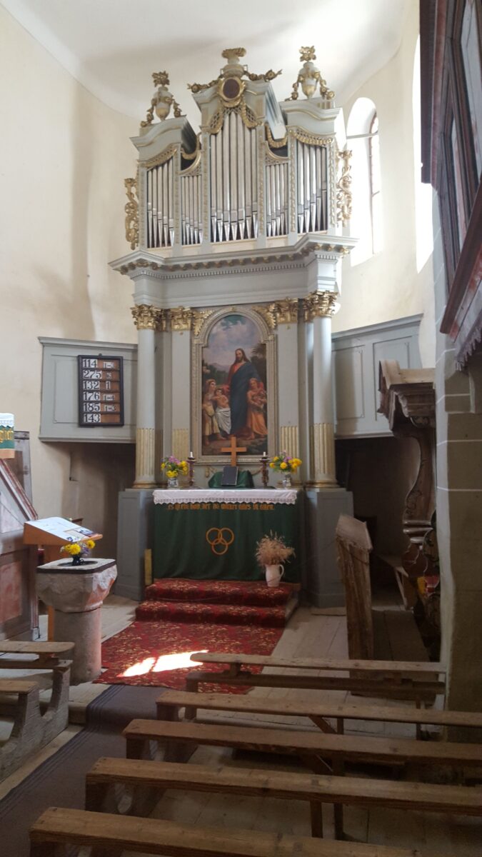 Następnie, pod koniec XII wieku, na teren wioski przybyli osadnicy niemieccy – Sasi siedmiogrodzcy. Przejęli oni świątynię i stopniowo zaczęli ją rozbudowywać. Co ciekawe, sama miejscowość pojawia się w źródłach pisanych dopiero około 1400 roku pod nazwą Alba Ecclesia, czyli „Biały Kościół”.