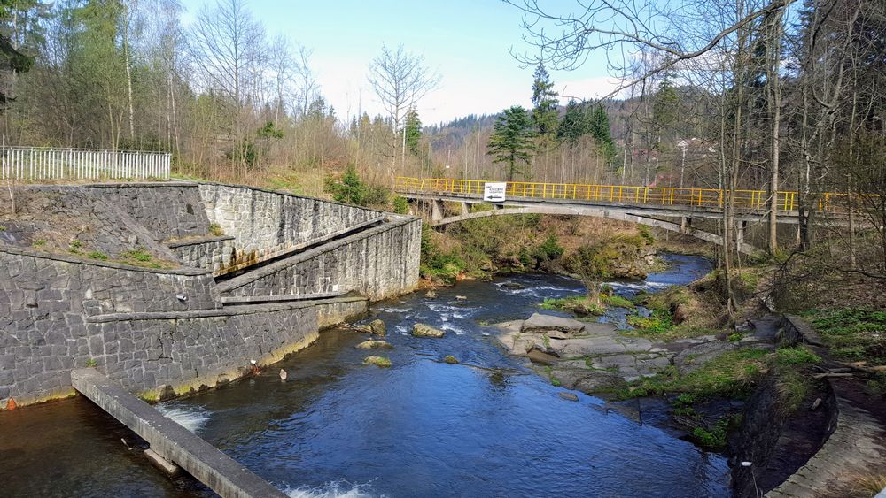 Przebywając w leżącej u stóp Beskidów malowniczej Wiśle i kierując się od strony Wisły Malinki i Centrum w stronę Jeziora Czerniańskiego w Wiśle Czarne, po prawej stronie znajduje się bardzo atrakcyjny wodospad. Posiada on około 8 metrów wysokosci i został sztucznie zbudowany na Białej Wisełce w latach 50-tych XX wieku. W pobliżu jest także małe jeziorko. Jest to teren Rezerwatu „Wisła”.