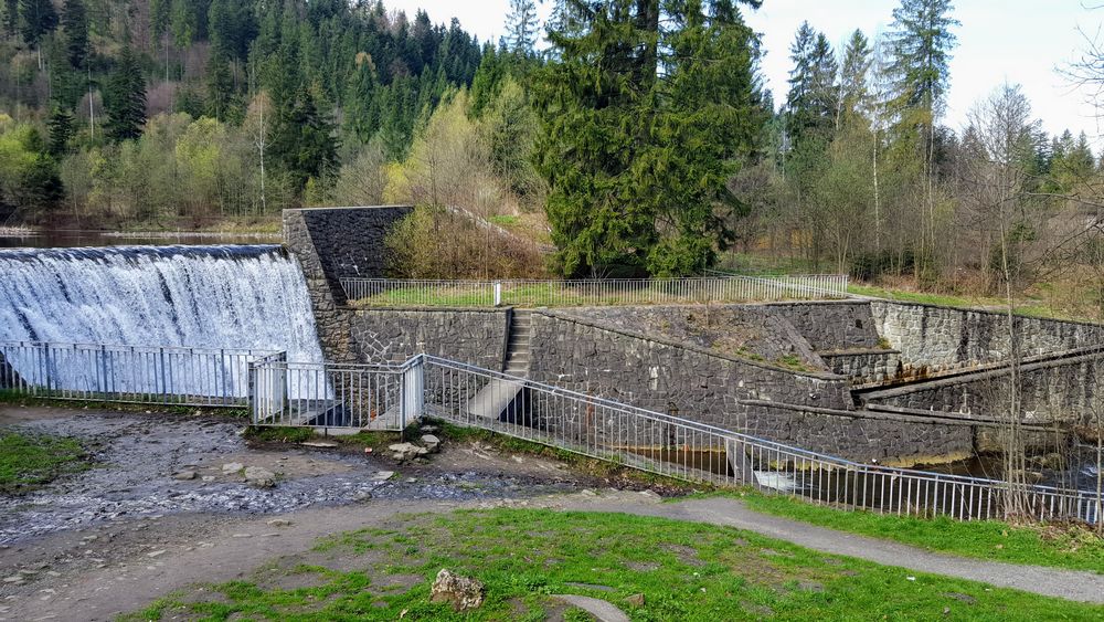 Kompleks otoczony jest barierkami. Naprzeciwko widać tzw. przepławki, które umożliwiają rybom płynięcie w górę rzeki co można obserwować. Niektórzy mieszkańcy nazywają to miejsce „mini Niagarą Wiślańską”. Okolica jest bardzo atrakcyjna turystycznie. W pobliżu wspomnianego jeziorka mieści się Dom Turysty PTTK, a także pochodząca z 1833 roku karczma „Drewutnia”.