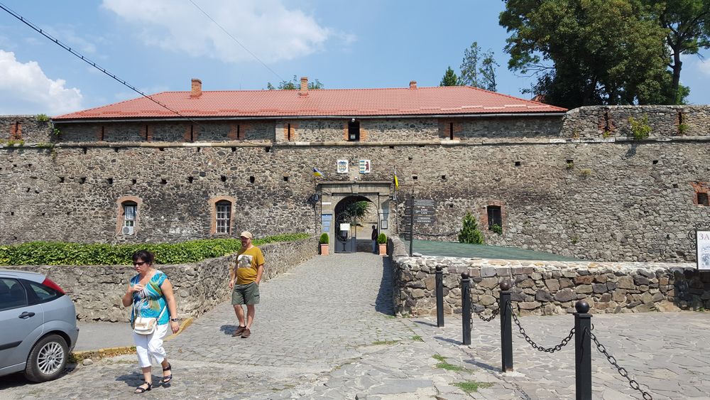 Rozpoczęliśmy zwiedzanie od zamku, który jak się okazało, jest najstarszą tego typu budowlą na Zakarpaciu i jego początki sięgają XI-XII wieku. Na początku wita nas posąg Herkulesa z 1842 roku, który zwycięża jadowitą Lernejską hydrę. Kamienna budowla posiada ufortyfikowane mury z dziedzińcem oraz Pałac z wewnętrznym dziedzińce. W taj części umiejscowiona jest ekspozycja muzealna. W ścianach zamku znajdują się tajemne przejścia między piętrami. Z murów rozpościera się bardzo dobry widok na okolicę. Jak w wielu tego typu obiektach nie brakuje tutaj legend na temat Białej Damy dziewicy.