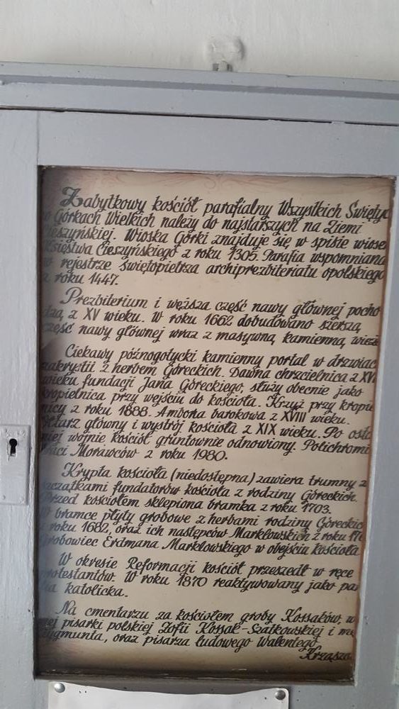 Będąc w Górkach Wielkich odwiedziliśmy także miejscowy kościół oraz cmentarz, gdzie spoczywa Zofia Kossak-Szatkowska, jej mąż i ich syn. Zofia Kossak-Szczucka została zapamiętana bardzo pozytywnie przez mieszkańców Górek Wielkich i jej grób jest często przez nich odwiedzany. Niedaleko Dworu znajduje się także ciekawe miejsce jakim jest Stanica Kamińskiego.