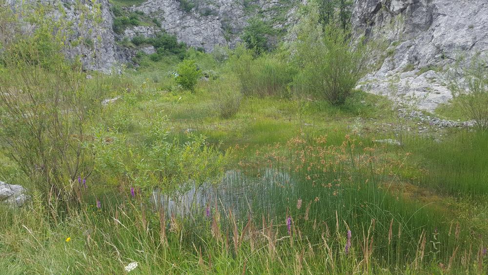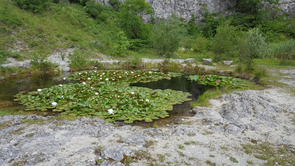 Dno stanowi mokradło i kilka jeziorek dochodzących do głębokości 2,5 metra, które otaczają kamienne wapienne bryły o wysokości od 15 do 25 metrów. Na miejscu w wyniku nasadzenia rośnie około 1200 gatunków roślin, głównie z okolic miasta. Dodatkowo 1 maja 1999 roku odkryto na miejscu jaskinię Pouťova (Odpustowa) o głębokości 58 metrów (2018 rok), do której otworu wejściowego można podejść. Prawdopodobnie na głębokości 80 metrów znajduje się system tuneli. Nie brakuje tutaj miejsc do wspinaczki (najstarsze drogi pochodzą nawet z 1934 roku!), a także w okolicy odkrytej jaskini utworzono wapienny labirynt z amfiteatrem. Ludzie tutaj szukają także skamieniałości. Przy odrobinie szczęścia można odkryć jakiś kamień z odbitym kwiatem paproci, co niejednokrotnie miało tutaj miejsce 🙂