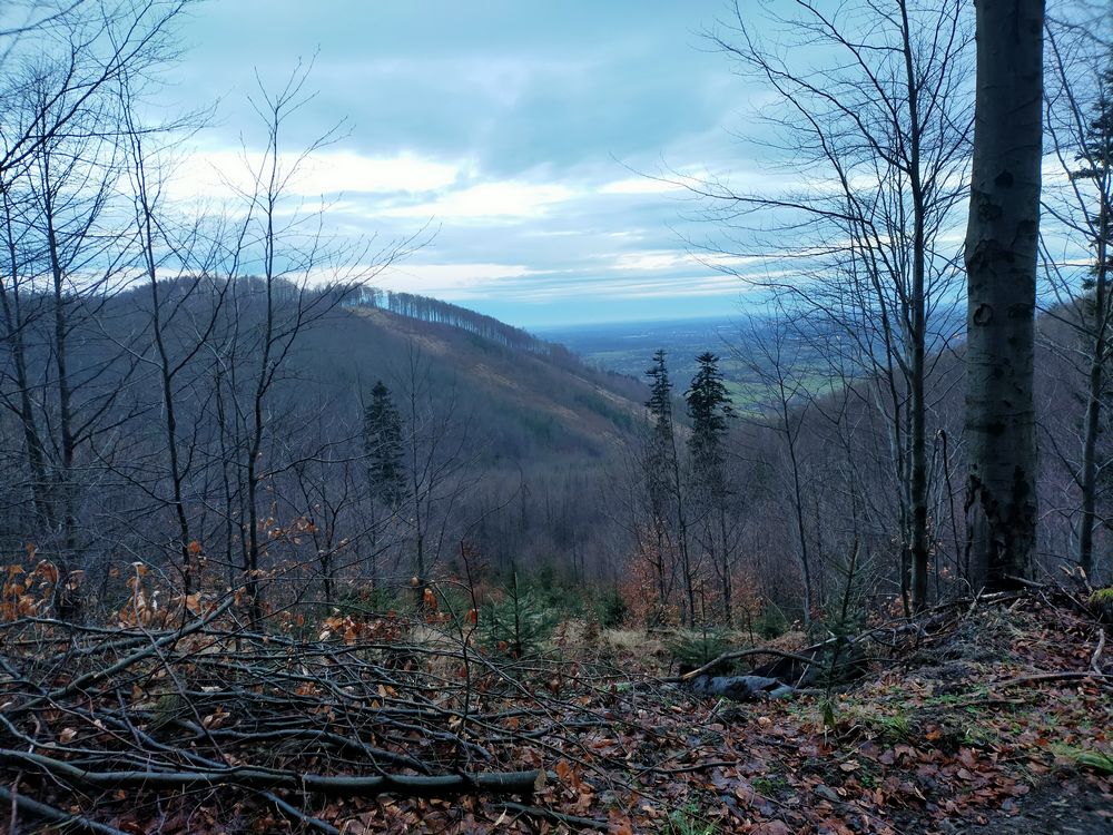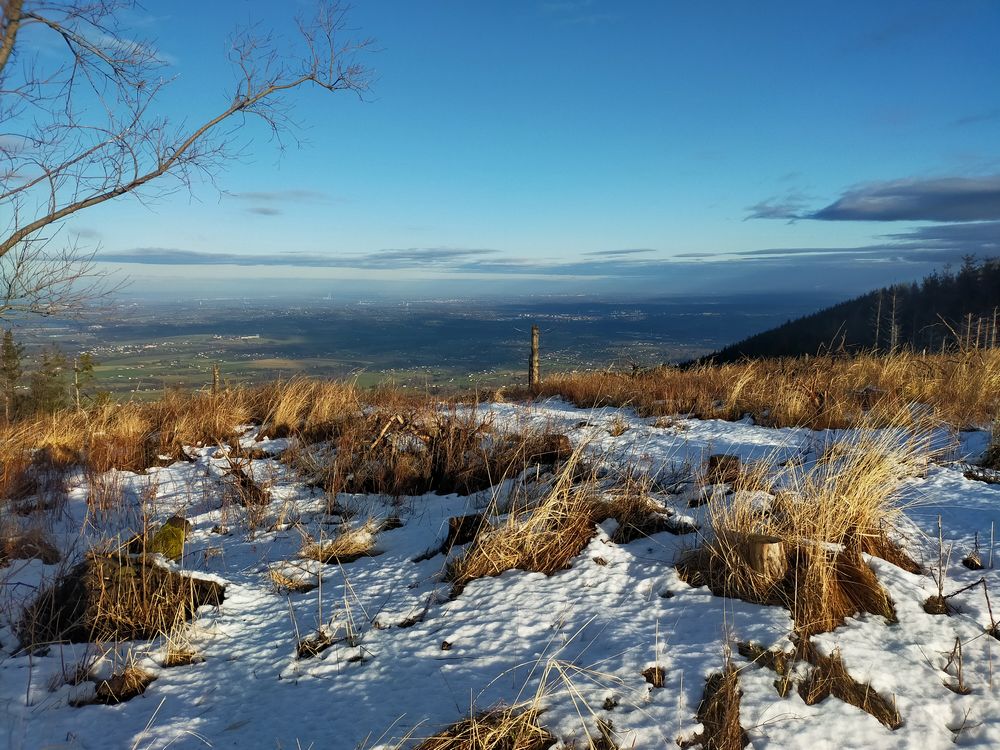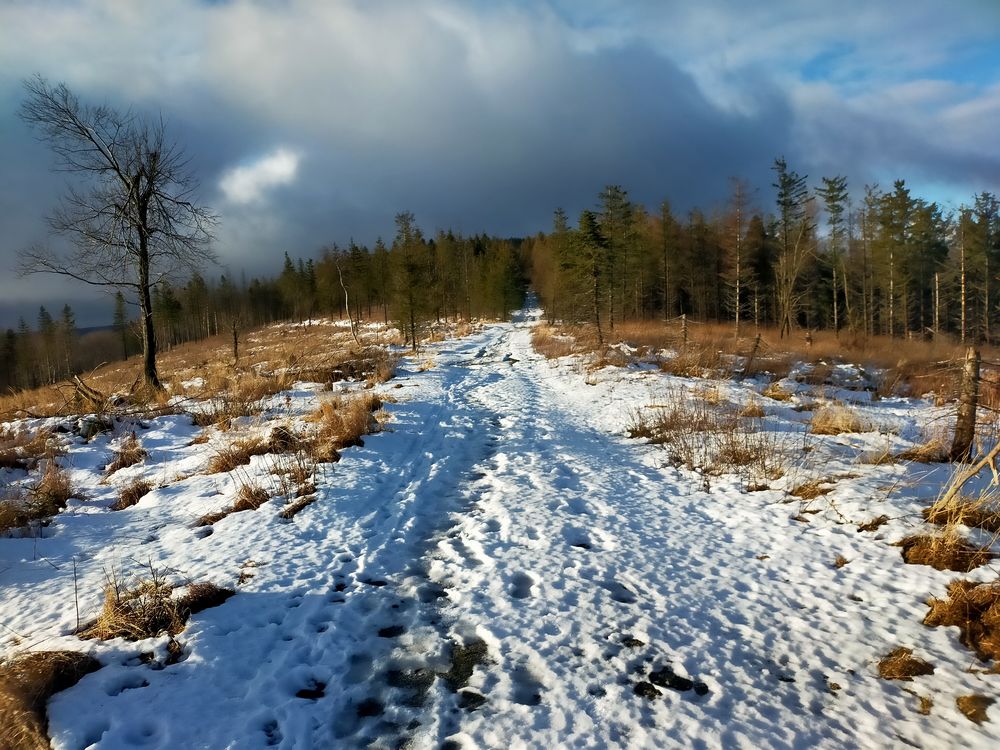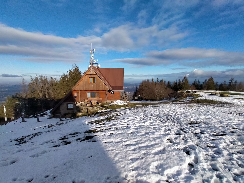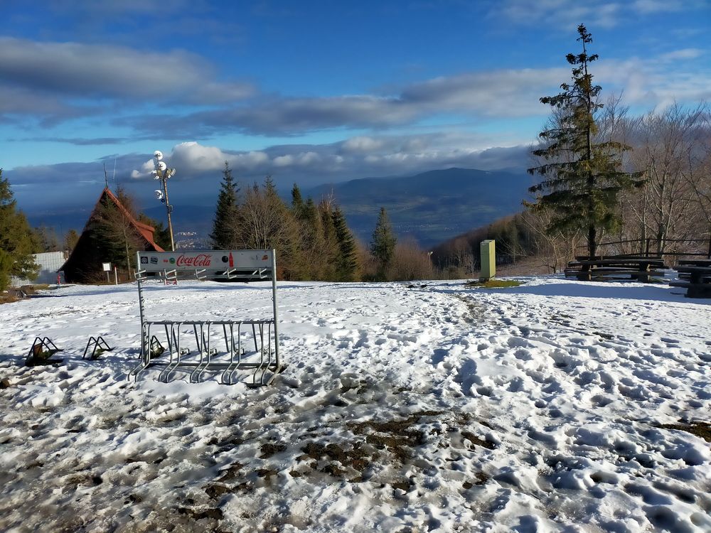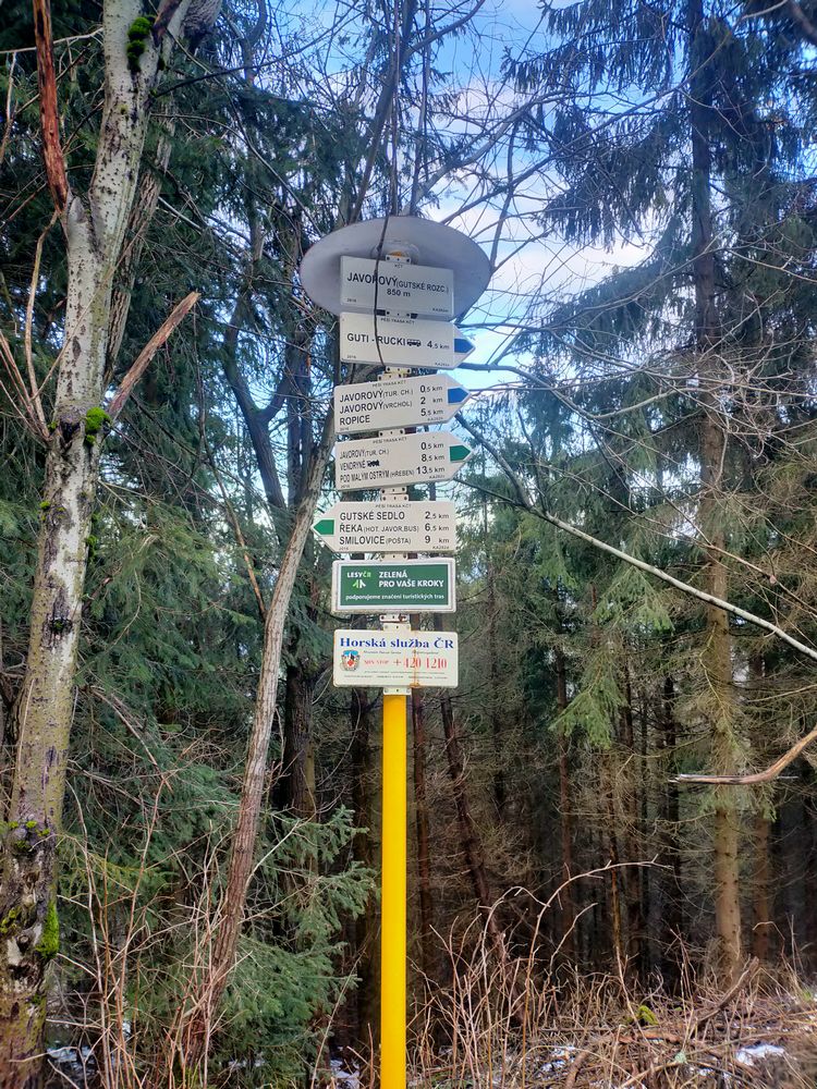 Taka obecnie zima jak wiosna, jednak w górach przecież jest fajnie w każdym okresie. Przez tydzień myślałem, gdzie pojechać w sobotę i wymyśliłem Jaworowy Wierch / Jaworowy, Wielki Jaworowy (cz. Javorový vrch, niem. Jaworowy, w okresie II wojny światowej Ahornberg; 1032 m n.p.m.) / u podnóża czeskiego Trzyńca (cz. Třinec, niem. Trzynietz, słow. Trinec) w Beskidzie Śląsko-Morawskim. Parę lat temu wraz z Kasią i Moniką próbowaliśmy na niego wejść, jednak straszliwa ulewa i niedoskonały strój uniemożliwiły nam wejście. Wybrałem się więc tam sam w sobotę 14 stycznia. Pobudka przed 6 i wyjazd. Po jakiejś godzinie byłem na miejscu. Za cel wybrałem sobie parking powyżej Gutskiej Karczmy, a konkretnie okolice Gutskiej Studni. Było jeszcze ciemno i nie zauważyłem tego parkingu, więc wjechałem nieco wyżej szlakiem i zostawiłem samochód w miejscu rozwidlenia ścieżek. Jak to czasami bywa idiotycznie, straciłem 35 minut, idąc drogą leśną, zamiast jak byk wymalowanym niebieskim szlakiem, mając z tyłu wieżę telewizyjną obok schroniska. Zatem dopiero po tym czasie rozpocząłem wędrówkę szlakiem właściwym.