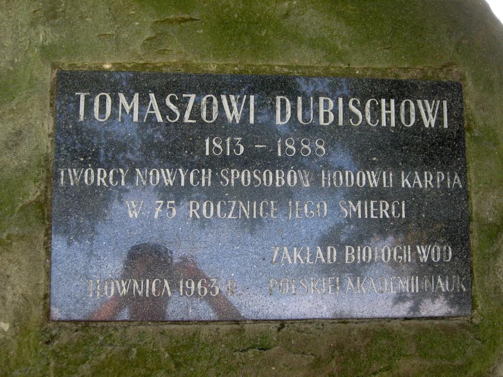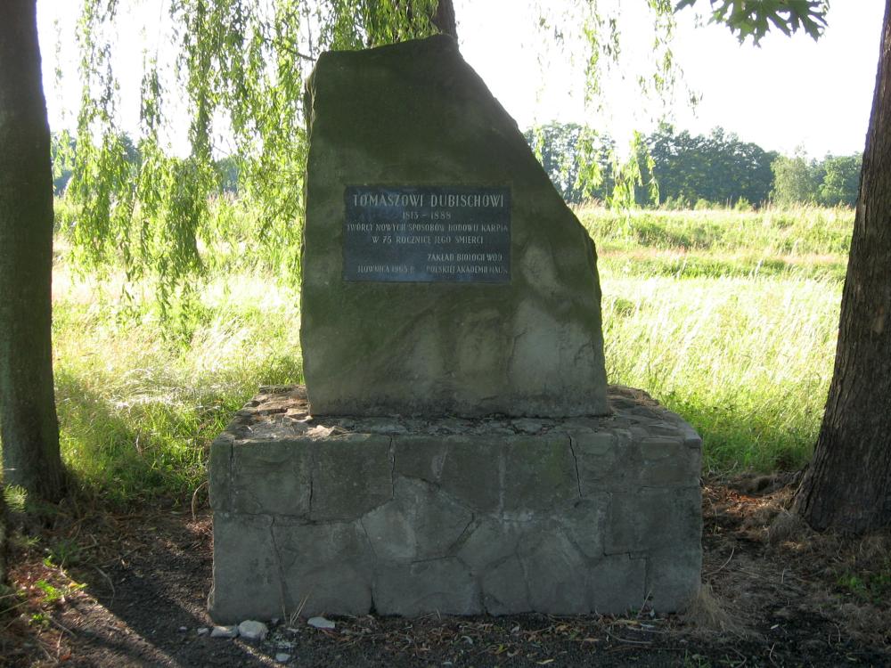 Obelisk znajduje się na ulicy Skoczowskiej, niedaleko Ochotniczej Straży Pożarnej i został tutaj postawiony przez Zakład Biologii Wód PAN w 1963 roku, w 75 rocznicę śmierci wynalazcy. Obecnie na tym terenie działa Stowarzyszenie Rybackie „Żabi Kraj”. System Dubischa został udoskonalony przez ucznia Tomasha Dubischa, Adolfa Gascha z Kaniowa. Starał się on uzyskać rybę bardziej wykształconą i z większą ilością mięsa. W ten sposób wyhodował nową rasę karpia. Jest to ryba o małej głowie i mięsistym ciele. Zdobyła ona wielką sławę na świecie i nazwana została karpiem królewskim lub galicyjskim. Adolf Gash w 1880 roku otrzymał w Berlinie złoty medal na międzynarodowej wystawie rolniczej.