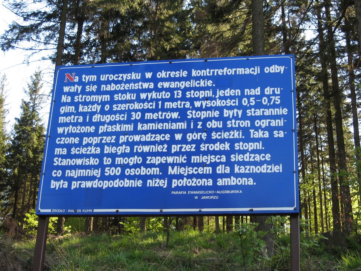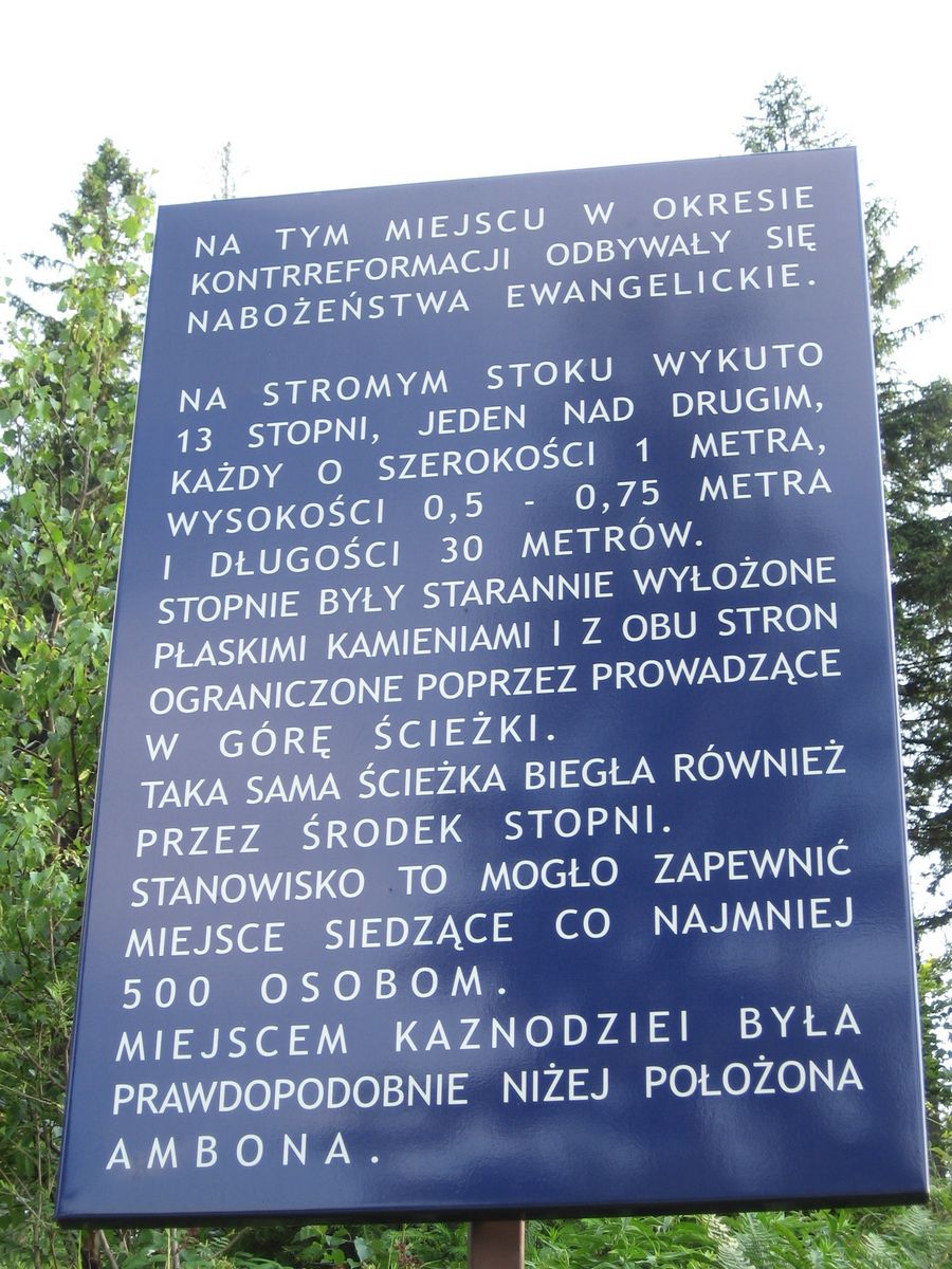 Jednym z takich miejsc było zbocze góry Wysokie w Beskidzie Śląskim. Takie miejsca oddalone od domostw ludzkich umożliwiały odprawianie mszy. Mieszkańcy niepozornie udawali się na takie spotkania i nabożeństwa. To wszystko musiało być realizowane w sposób tajny, gdyż było nielegalne i groziło surową karą. Msze w obrządku luterańskim odprawiali wędrowni kaznodzieje m.in. z Górnych Węgier (Słowacji) oraz Dolnego Śląska.